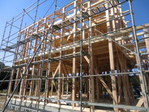 平鹿町I様邸現場、建て方始まりました!(^^)! 大工さん安全第一でお願いします(^^)/