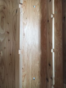 平鹿町醍醐I様邸、断熱材の吹き付ける厚さを測るゲージの取り付け作業中です!(^^)! 吹付施工は土日に行います(*^^*)