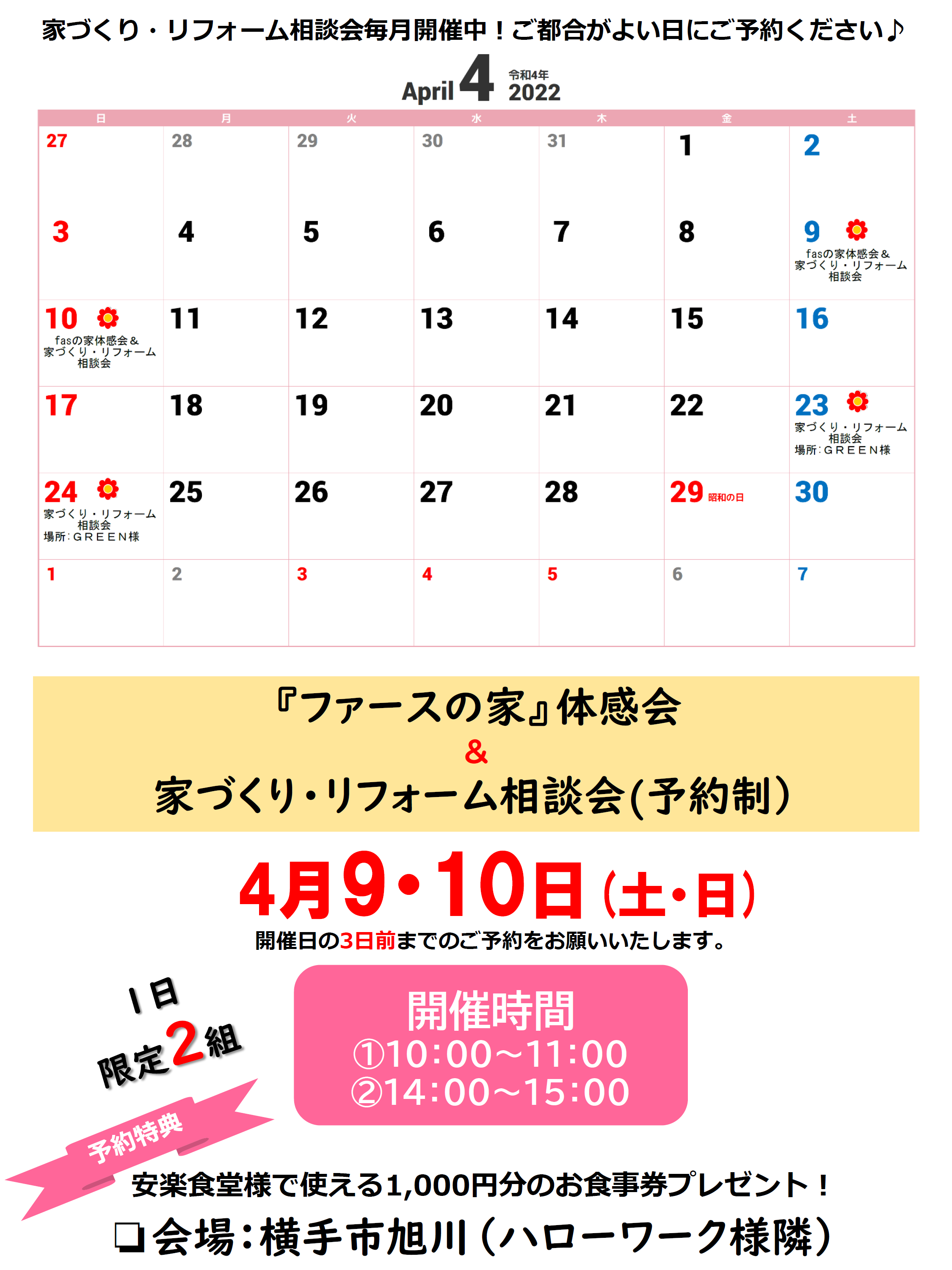 『ファースの家』体感会&家づくり・リフォーム相談会 →