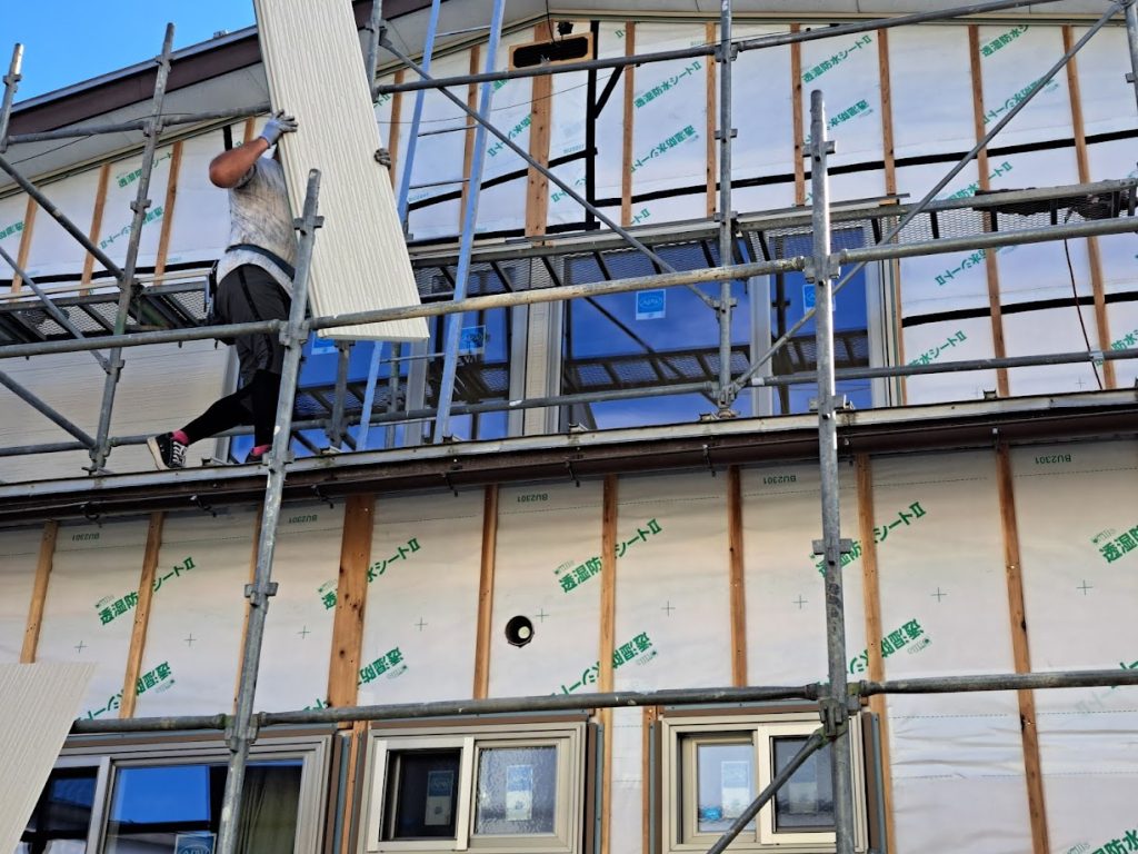 内装の工事も順調に進み外壁工事しております。