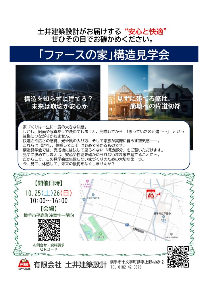 『FASの家』新築現場の構造見学会を行います。